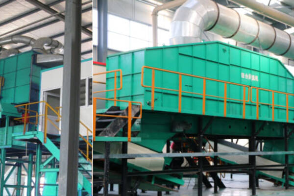 風(fēng)選機(jī)對垃圾篩分處理后對篩上物中的塑料及紙張等輕物進(jìn)行分選。通過調(diào)整送風(fēng)角度、布料器位置、擋簾位置、物料在流速和流量下有效分離使該分選系統(tǒng)達(dá)到處理效果,分選出的輕物料進(jìn)入物料分離器,廢氣和輕物料得到分離,廢氣粉塵進(jìn)入除塵系統(tǒng)處理后排出,另一部分再與新鮮空氣混合后重新進(jìn)入鼓風(fēng)系統(tǒng)。實(shí)現(xiàn)輕物料垃圾的分選。