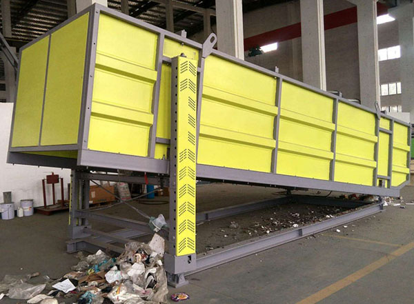 根據(jù)分選物料中不同成份的尺寸,密度和形狀的差異,在斜面上運(yùn)動(dòng)或與斜面碰撞彈跳時(shí),產(chǎn)生不同的運(yùn)動(dòng)速度和彈跳軌跡而實(shí)現(xiàn)彼此分離,較常用于處理分選生活垃圾、預(yù)選后裝潢垃圾、壓榨后的餐廚垃圾、紙回收等行業(yè)。而彈跳篩是彈跳分選機(jī)的核心部件,用于為彈跳分選機(jī)提供用以碰撞彈跳的斜面,兩臺(tái)大風(fēng)機(jī)可以把塑料袋等一些輕便的垃圾分揀出倆。
